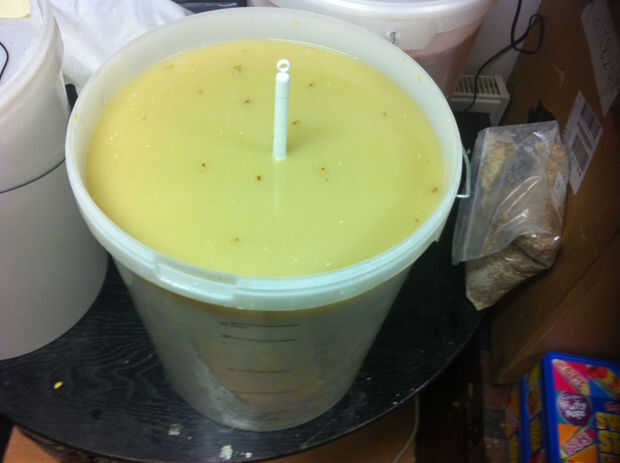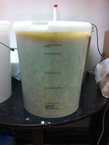 mi método me di cuenta que guarda tiempo para cocinar un lote y luego ponerlo en un fermentador mientras enfría para poder seguir con otro y ahorrar tiempo. así que quieres un fermentador de limpiar y esterilizar antes de empezar a cocinar si vas a hacer más de un lote. sólo Limpie el fermentador con agua caliente y jabón, enjuagar con agua limpia luego poner algún polvo esterilizante en y algo de agua caliente. pop la tapa en y agitarla (Asegúrese de que la esclusa esté en así puede escapar de la presión) agitar cautelosamente.