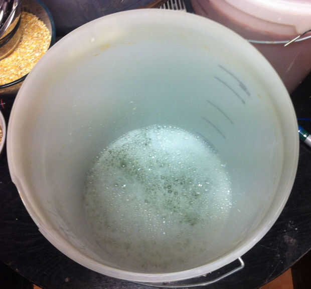 Entonces deje la mezcla durante 10 minutos para que la cebada tiene tiempo a remojo, mueven a los granos de la fermentadora y todos, con agua caliente enjuagar la olla y vierten que en la fermentadora, sólo desea aproximadamente media taza de agua.