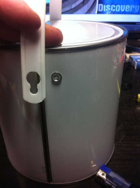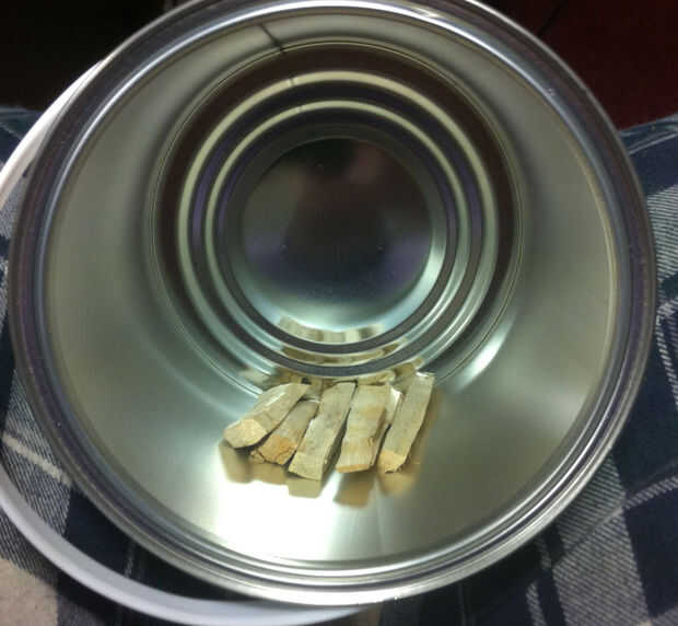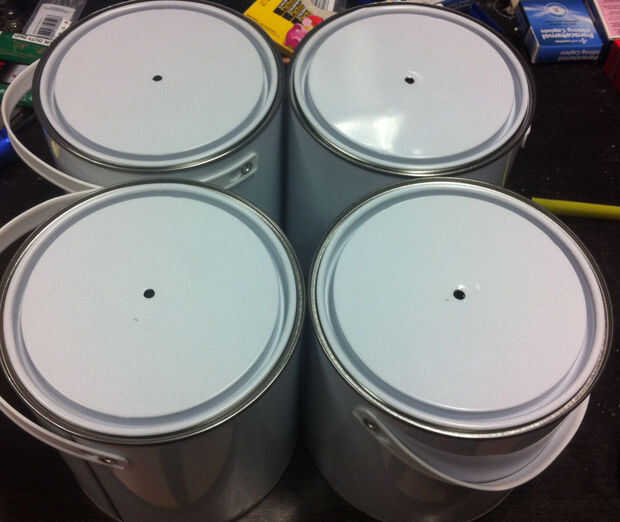 Necesita algunas latas de pintura estoy utilizando latas vacías de 2.5L que compré en ebay, era el único lugar que pude encontrarlos, he probado todo sobre el lugar de decoradores, pintura proveedores, almacenes, tiendas DIY el único lugar que trato de no fue auto spray tiendas y la razón que menciono es el usuario de ebay que compré las latas fuera dirigido su anuncio en las tiendas de aerosol auto por lo que si le van a hacer encontrar problemas latas su primer. mejor Compro latas de pintura vacías en lugar de usar pintura vieja latas porque puede contaminar la madera que a su vez su manera en su espíritu y no quieren beber. Me aseguré que mi latas no tienen una superficie pintada en el interior, el exterior no importa como que no está en contacto con la madera y que se queme todas formas.