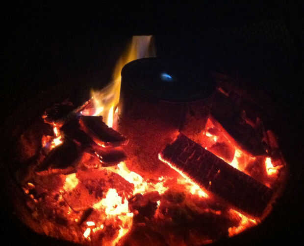 Creo que la mayoría de las personas sabe empezar un fuego, colocar un papel o algo y poner pequeños trozos de madera en la parte superior y luz, simple cuando la madera está encendida más madera. simple, queremos tener una buena cantidad de brasas para calentar nuestras latas así añadir suficiente madera para crear una capa decente de brasas/trozos de carbón. Si tienes problemas de conseguir el fuego va a intentar usar un secador de pelo para empujar el aire en el fuego y que debe recibir la madera para coger muy bien.