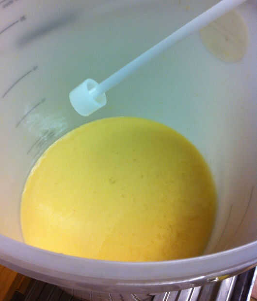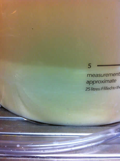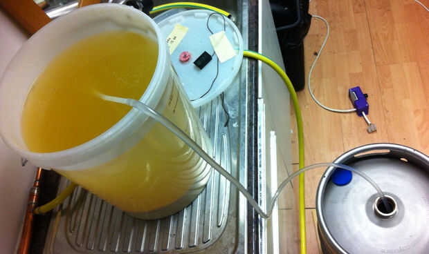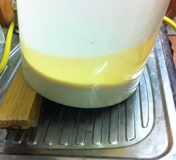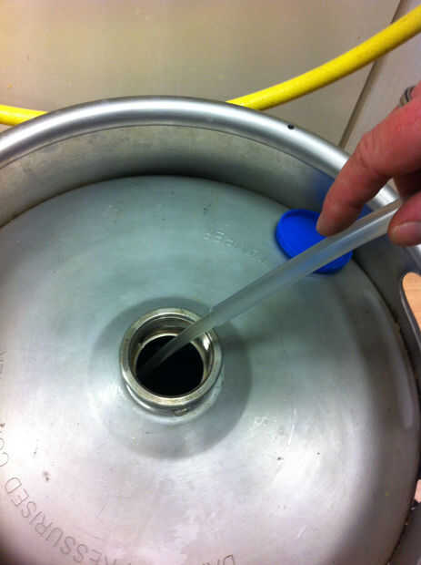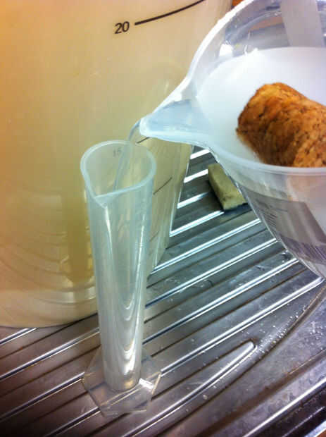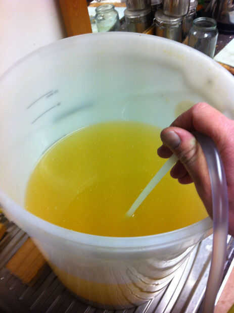 A sifón la cerveza en la caldera, asegurándose de no aspirar el sedimento en el fondo de la fermentadora.