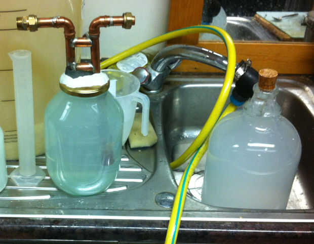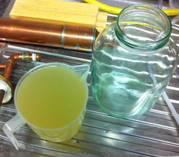 2 jarras para recoger el espíritu de hidrómetro todavía, el que es uno de espíritu para saber qué porcentaje me estoy out.a envase para que el espíritu que luego puedo poner el hidrómetro el Juan de demi que pondrá el espíritu en después de que ha destilado.