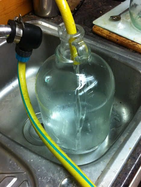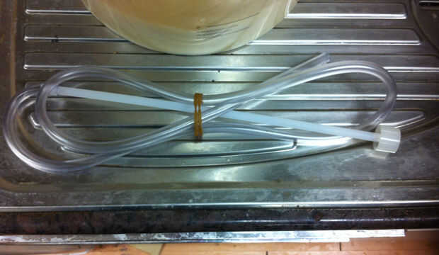 gancho para arriba de las mangueras, que ya habían minas enganchadas como acabo de terminar de ejecutar una carga de soluciones a través de él como de limpieza su estado sentados por unos meses. Correr agua a través de él por lo que el condensador está cebado, sin necesidad de dejar funcionando todavía.