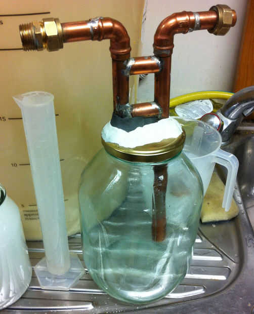 Interesante nota aquí en golpeadores hay también es un dispositivo similar que se llama una aldaba de kasrakol, esto es básicamente lo mismo pero el tubo de entrada no va muy lejos en y allí se pone nada de líquido en el barril. el propósito de esto es coger cualquier mugre de la todavía sucediera, que se conoce como eructos, esto sucede si su lavado o cerveza hace espuma para arriba y sube la columna todavía. al tener la aldaba del kasrakol no pondría fin que esta en el acabado del producto pero no actuaría como una segunda destilación.