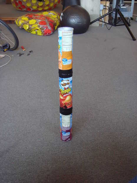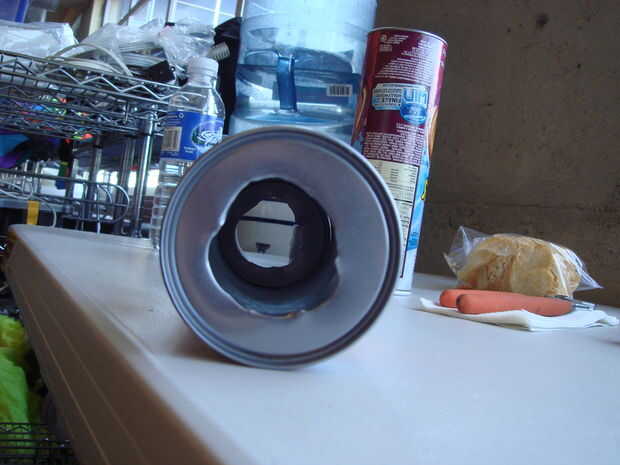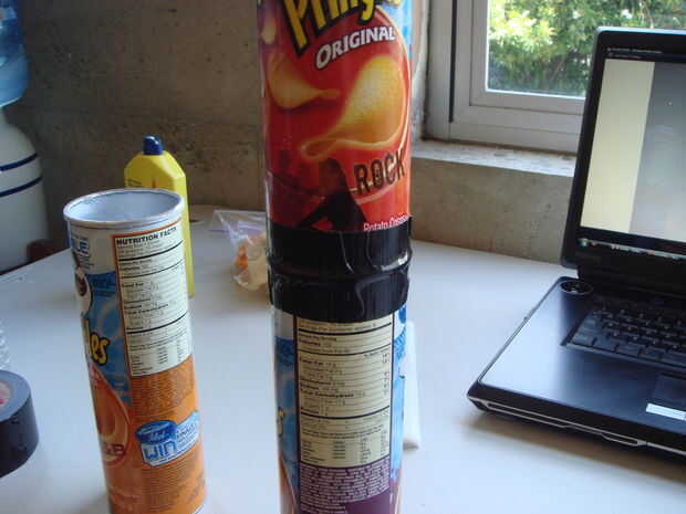 Paso 4: Apilar las dos latas con deflectores (hoyos) sobre un fondo sólido y cinta del conducto pesadamente (alrededor de 7 - 12 veces) en las costuras.