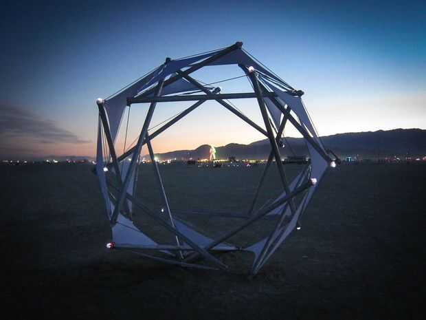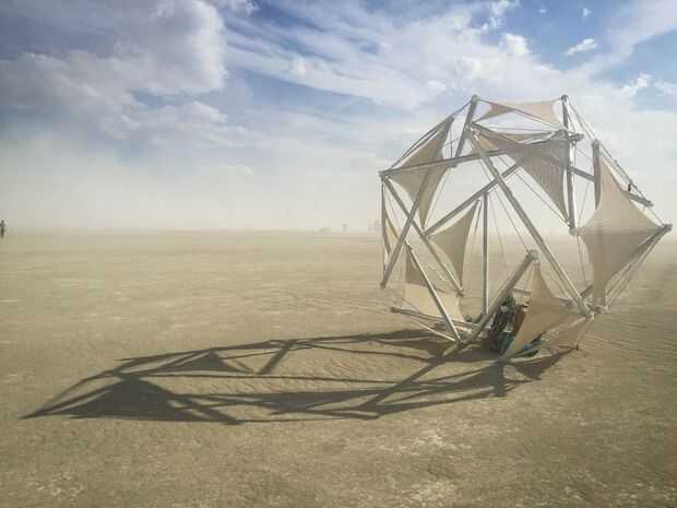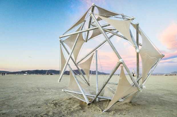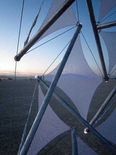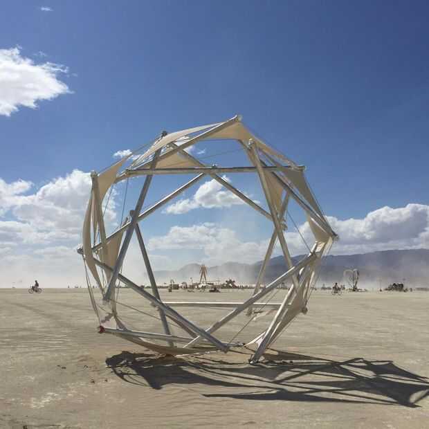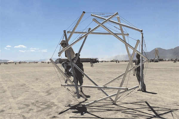 La pieza se llama 'Quiralidad', significa 'uso de las manos' y es una escultura de tensegridad de gran escala que fue diseñada y construida para el año 2015 de hombre ardiente en el lapso de cuatro meses. Fue construido en el sitio por un equipo dedicado de 8, con una base voluntaria total de 30.