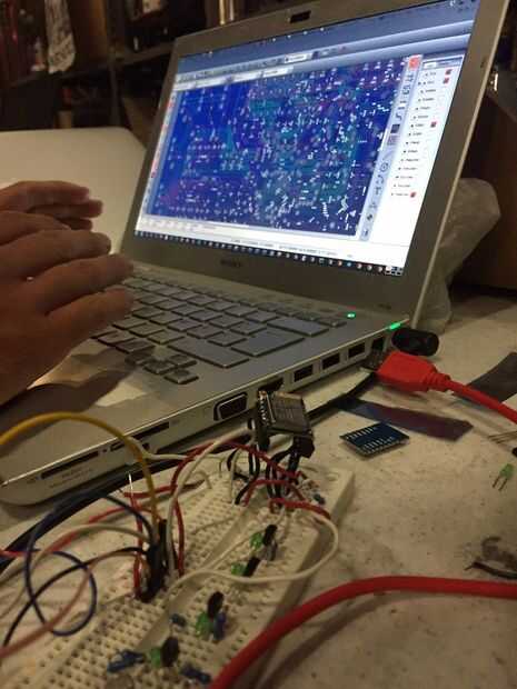 En muy poco tiempo, desarrolló un módulo wifi que tenían acelerómetros y sensores de tacto capacitivo construidos en y conduciría a los efectos de iluminación. Una de las partes difíciles de ser un proyecto con un calendario tan acelerado fue que no tenemos tiempo para tener una Junta de PCB personalizada hecha. Decidimos pare a los efectos del acelerómetro porque en el polvo, simple es mejor.