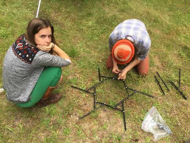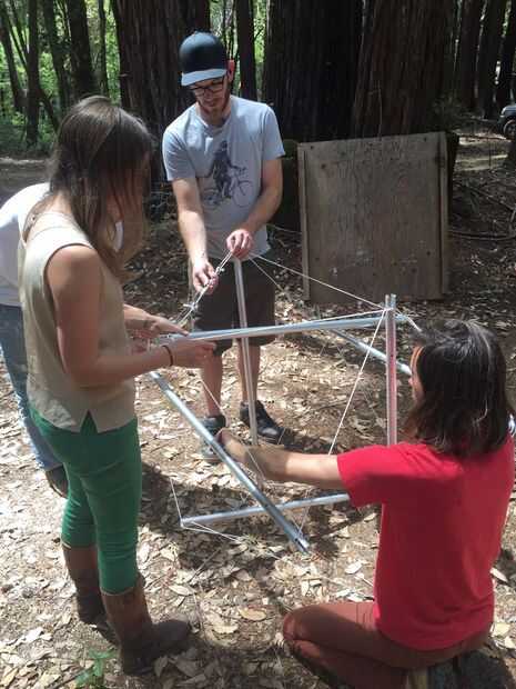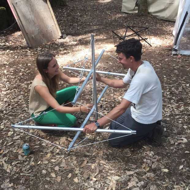 Demostró para ser difícil reunir. No había forma para sujetar los postes en la posición correcta y evitar tomó muchas manos hasta que todo el asunto estaba en tensión, pero luchó con los extremos de deslizamiento. Construimos primero con una cuerda, pero no tenía ningún refuerzo no direccional, por lo que l arrojaron para arriba en el aire y estalló al aterrizar.