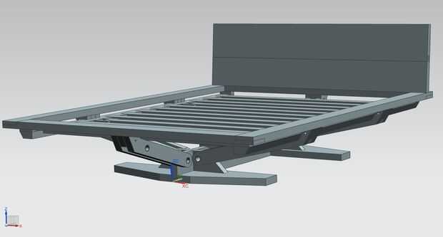 Empecé con esta idea de crear una cama que parece flotar desde ciertos ángulos. Después en algún momento esbozar conceptos diferentes sobre cómo se podría lograr, me trasladé en CAD para el diseño de detalle. De este modelo de CAD luego creé una serie de dibujo para cada componente que iba a producir de las tablas de andamios. La dimensión de juntas estándar scaff eran tenidas en cuenta y restringir las dimensiones de las piezas.