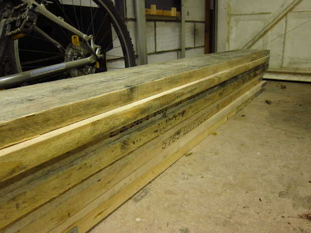 Empecé por preparar las tablas de andamios; eliminación de la carpintería de los extremos y dándoles un poco de un ordenado para arriba.