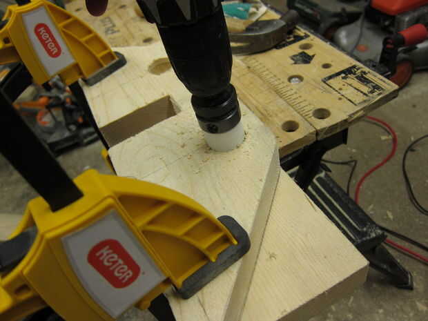 Era entonces tiempo para aplicar pegamento de madera de algunos, las piezas encajan y abrazadera todo hasta que se seque. He añadido algunos tornillos para la buena medida.