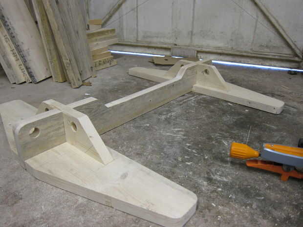 La base consta de 5 partes que usted necesita para cortar; 2 x placas de Base, 2 soportes de Base x y la columna vertebral.