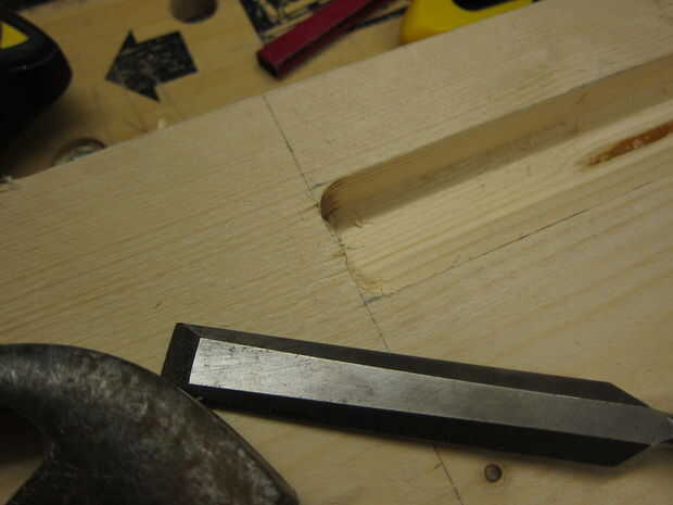 - Para el corte de hendidura otros tuve que utilizar el router para el corte completo. Este significado tener que hacer múltiples pasa, cada uno tomando un poco más el material. Las esquinas se enfrentaron con un cincel.
