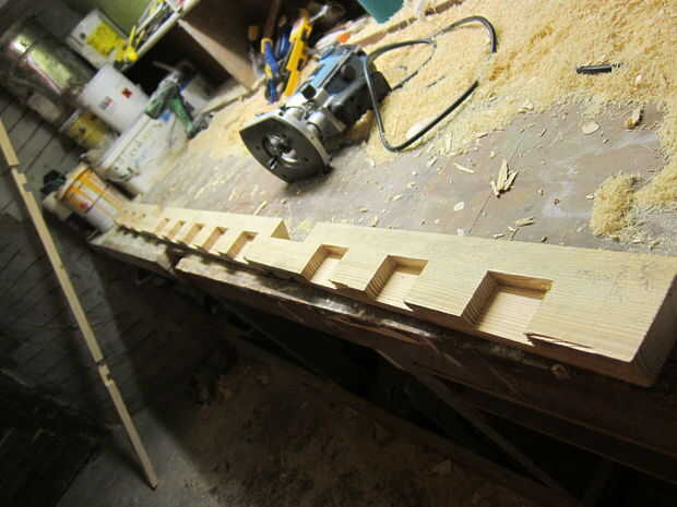 - Una plantilla era corte de un trozo de madera y utiliza con un router para cortar los huecos para los listones en.