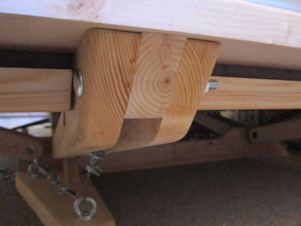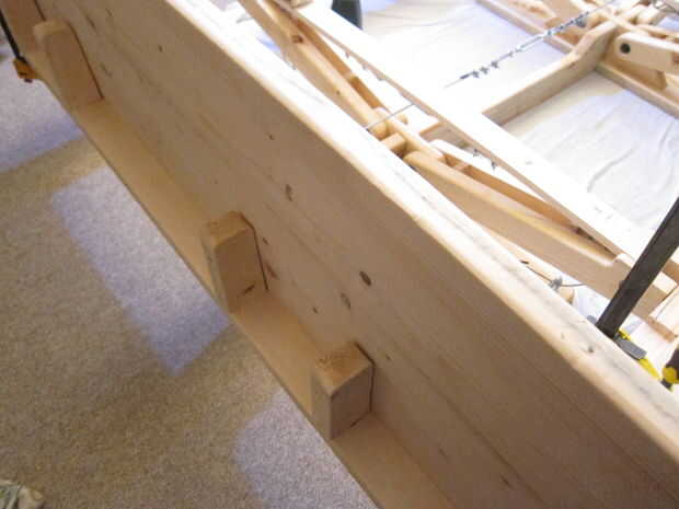 - El listón se monta y ahora se une a la envolvente. Bloques de madera están pegados y atornillados entre los soportes del listón y envolvente. Lo hice cuando fueron montadas en los brazos, más que antes para asegurar la alineación.