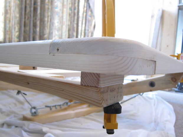 - Necesita las piezas de 'Accesorio' cut-out y encolados/atornillados a la envolvente. Hecho otra vez, cuando está montado para asegurar que estaban en el lugar correcto entre los brazos.