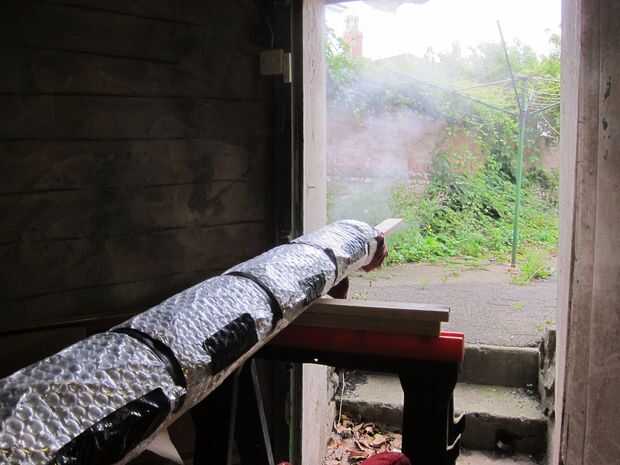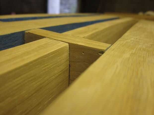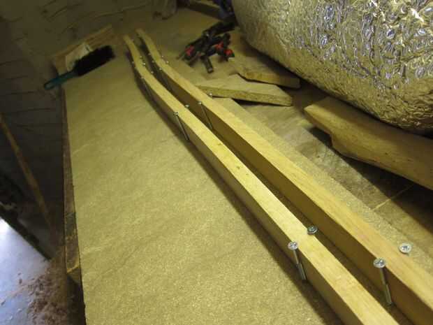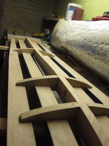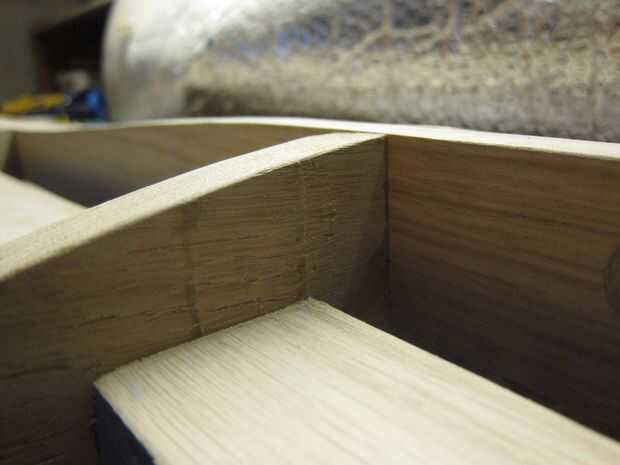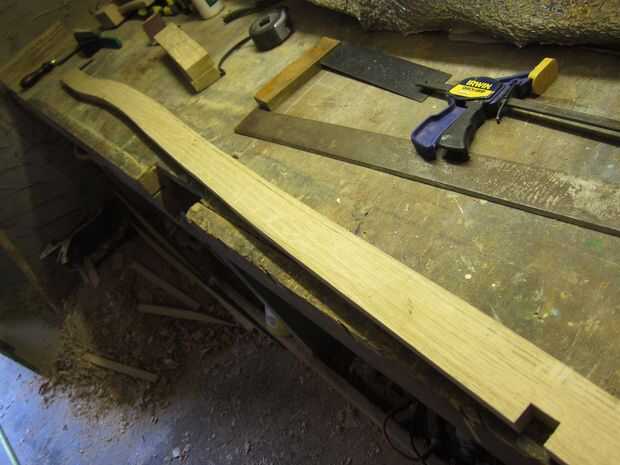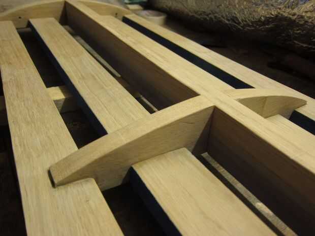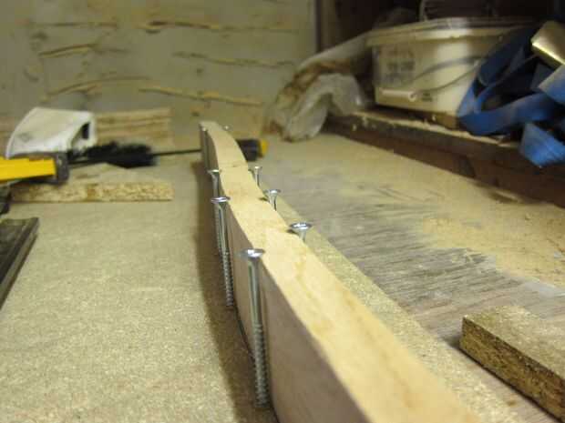 Más flexión de vapor fue utilizado para doblar los listones en la misma curva que la parte superior de la columna vertebral. Otra vez una forma simple fue golpeada para arriba en algunos restos de madera de hoja que tenía y los listones individuales a esto. Una vez doblados los listones fueron trasladados a un jig de enfriamiento.