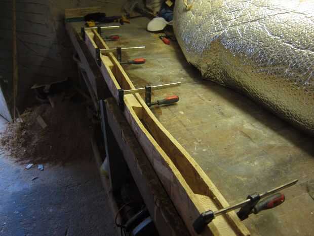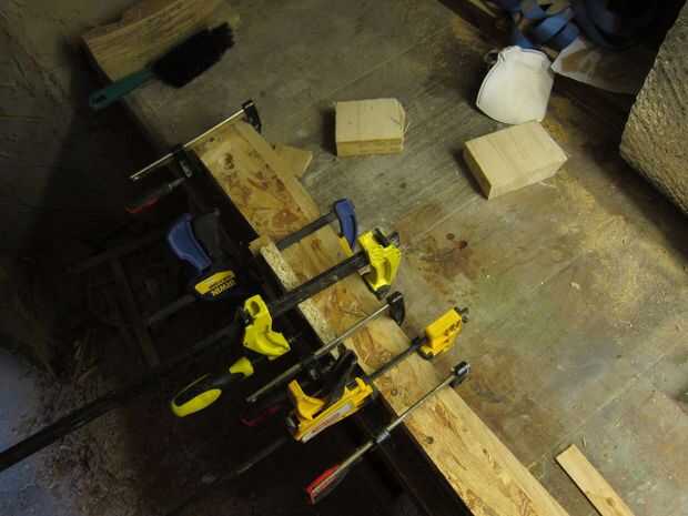 Una vez todos los listones de corte doblado y hendiduras, la parte superior se pegan y afianzado con abrazadera