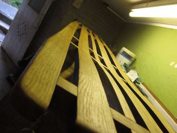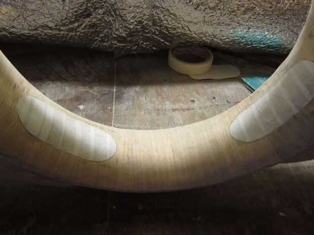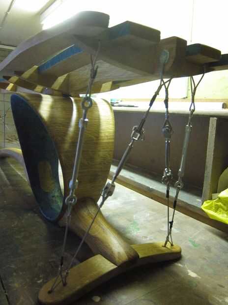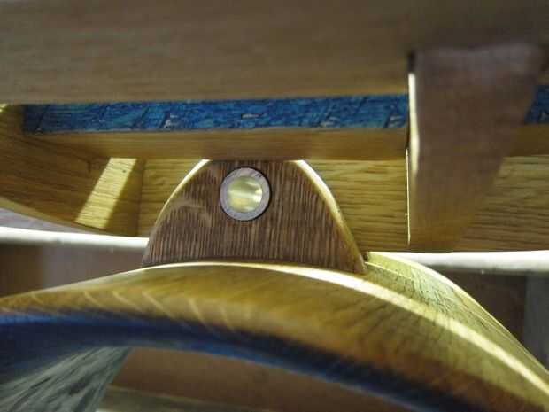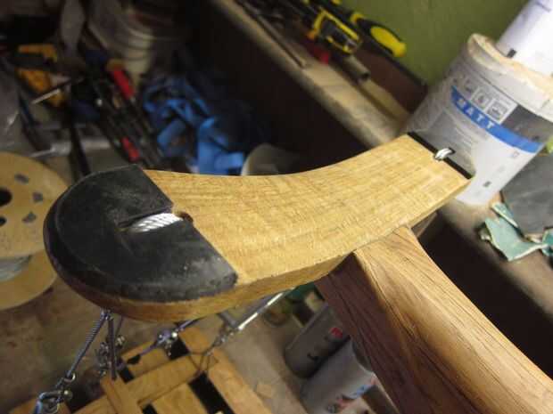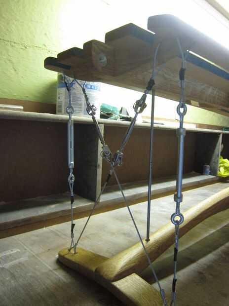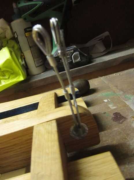 La parte superior se sentó en el lazo y un perno de aluminio insertado a unirse a ellos. Una varilla delgada fue agregada al final de la compensación y cables luego tensada hacia arriba para evitar balanceo/juego.