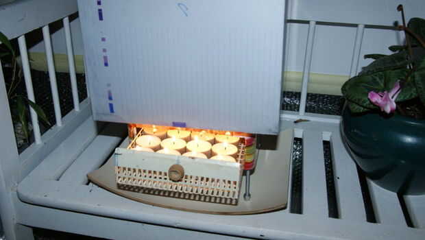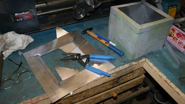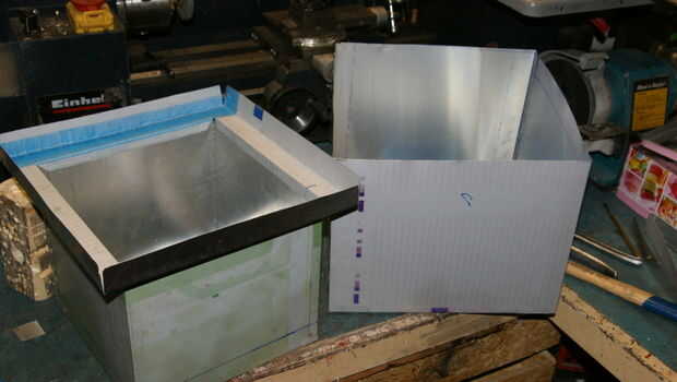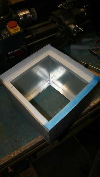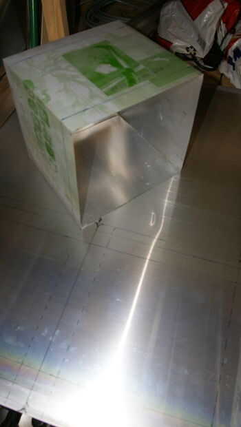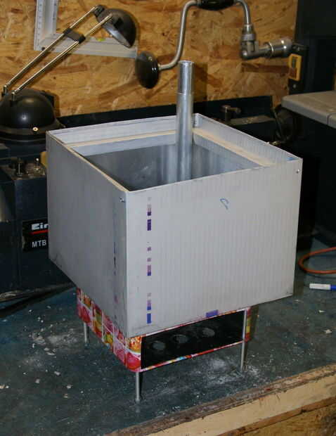 Las dimensiones de la caja son aproximadamente 25 x 35 x 25 cm que es suficiente para obtener espacio de horno en una olla de camping de 1 litro. Chimenea permanecen como dispositivo de seguridad y casi todo el calor debe captarse en este horno de caja.