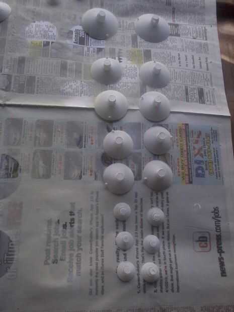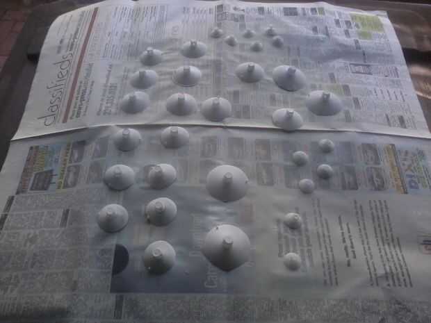 Sacar los ganchos de las ventosas y las ventosas en la parte posterior de la pintura. Plana de pintura en aerosol blanca. Decidí hacer esto para un contraste, ya que son claro.