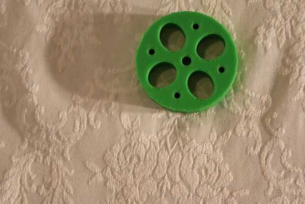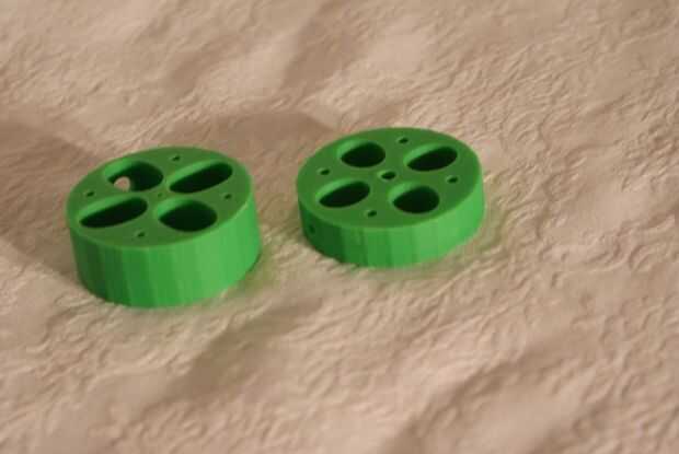 Rápidamente comencé con el diseño de las vértebras en Google Sketchup. Había exportado estos archivos como. STL para impresión 3D usando este plugin para Sketchup. La primera versiones centro agujero diametro había sido mal calculada y no eran uniformemente los agujeros de forma ovalada. Esto resuelta rápidamente con una segunda versión, pero pronto se dio cuenta de que no sería práctico 3D imprimir cada uno de ellos, ya que cada una se ~ 7 horas para imprimir. Versión de tentáculo 2 terminó antes incluso había conseguido ir, y fui hacia la mesa de dibujo.