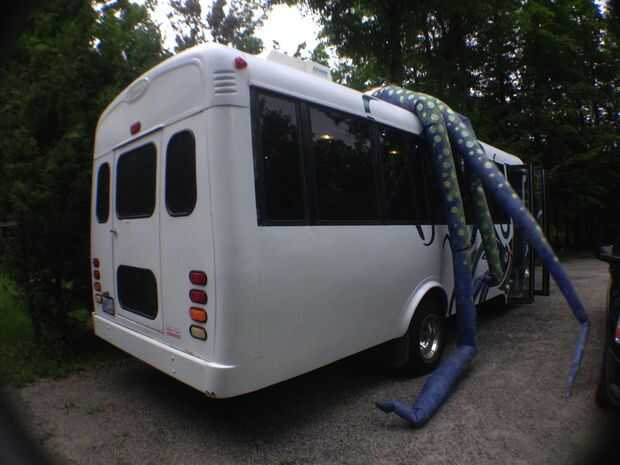 Inicialmente, este proyecto comenzó con nuestro móvil de aventura de la familia y de nuestro hijo wee en "Architoofus", el calamar gigante. Ha buscado en línea opciones de diseño para el exterior del autobús y encuentra diversión de Kraken en cada rincón de internet. Claramente no sólo paramos en un autobús con una pegatina de Kraken! ;)
