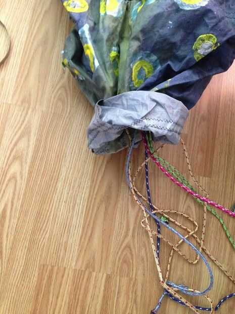 Extienda sus tentáculos y alimentar una cuerda por la punta de cada tentáculo y la guarnición del PVC en la parte inferior. Utilizamos un servicio de transporte para la reparación de redes de pesca, a la cuerda a través del cordón.
