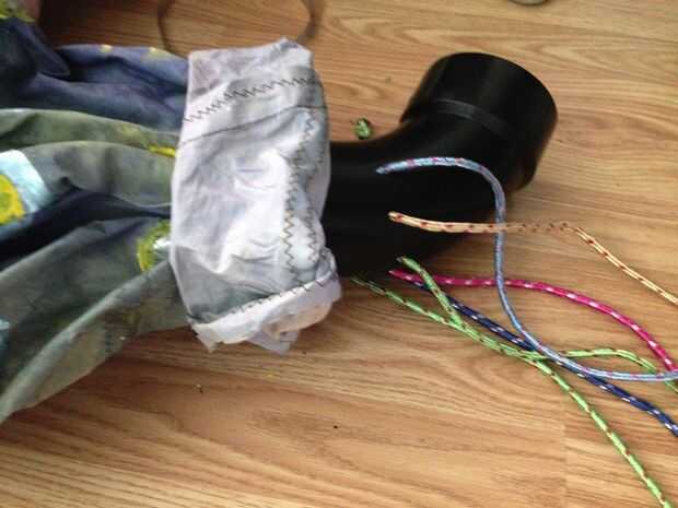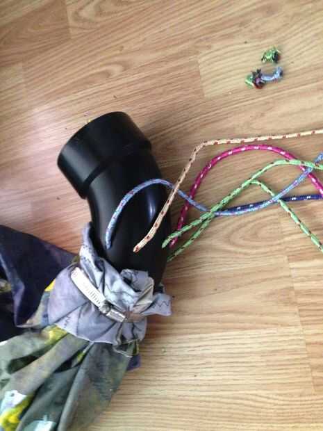 Taladro 6 agujeros en el tubo de PVC, para que las cuerdas se tirón a través fácilmente en esa dirección.