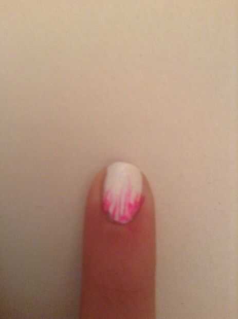 Tomar su primer striper de clavo y tenues líneas pequeñas a partir de la cutícula y cepille hacia arriba. Trate de experimentar con diferentes longitudes y espesores. Estos no tienen que ser perfectos, así que no te preocupes :)