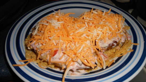 Cuando comer esto, uso un poco queso extra. El queso que cae sobre el lado, mexi ranch y las tiras de tortilla se mezclan con el arroz. Es Yummy!