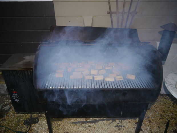 usé una parrilla de pellets para tostar mi roble a 300 grados f durante 1,5 horas. Pero un gas grill o el horno funcionará muy bien. Opcional en este paso sería char el roble con un soplete de propano si desea un sabor ahumado.