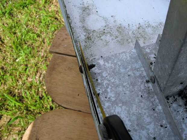 1. Corte las corrosión fusionados con tuercas de los pernos que sujetan la placa a la caja de montaje de aluminio.