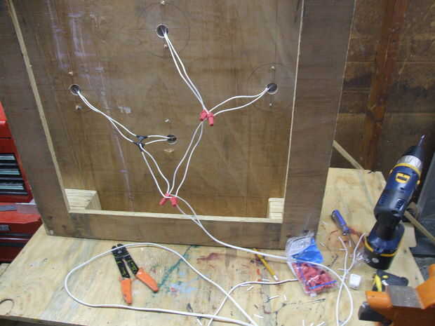 Ahora es el momento donde se conectan todos los cables "suaves" a un punto y toda la "proveyó de costillas/plata" a otro punto. Luego se conectará estos puntos a los cables que va al enchufe. Si una luz se apaga el resto funcionará porque el circuito está en