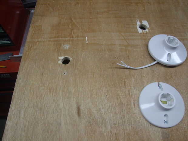 El cable de alimentación a través del orificio que ha perforado y utilice los tornillos provistos para sujetar el accesorio de la parte delantera. Probablemente desee perforar algunos agujeros (ver notas de imagen).