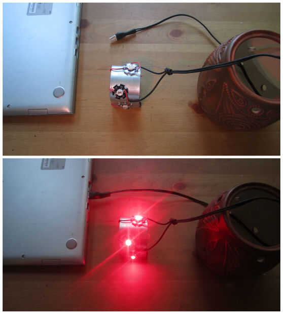 Ahora conectar sus dos juegos de luces en paralelo. De esta manera dividen el voltaje y suman el mA. Por suerte para nosotros el LED que va a utilizar son 2.5V cada. para que conectarlos en serie en primer lugar nos da 5V y luego dos en paralelo pide 5V que un estándar USB 2.0 ofrece 5V máximo. que es perfecto. Nuestros LEDs será ligeramente dimmer (200mA) pero que ha ok, imperceptible a los ojos.
