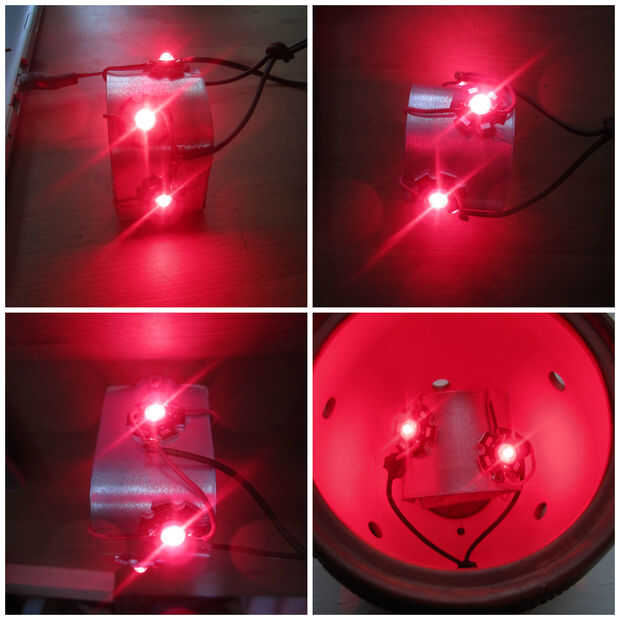 Encontrar algún cartón de desecho y un palillo de dientes, mezclar el epoxi en allí. Aplicar una pequeña cantidad en cada LED y péguelos en el disipador de calor. Aplique presión mientras gira los granos LED izquierda y derecha ligeramente. Esto no asegurará agujeros de aire y máxima viscosidad. Espere al menos 15 minutos para ellos también la curación, o un ventilador al se enfrentan y acelerar el proceso.
