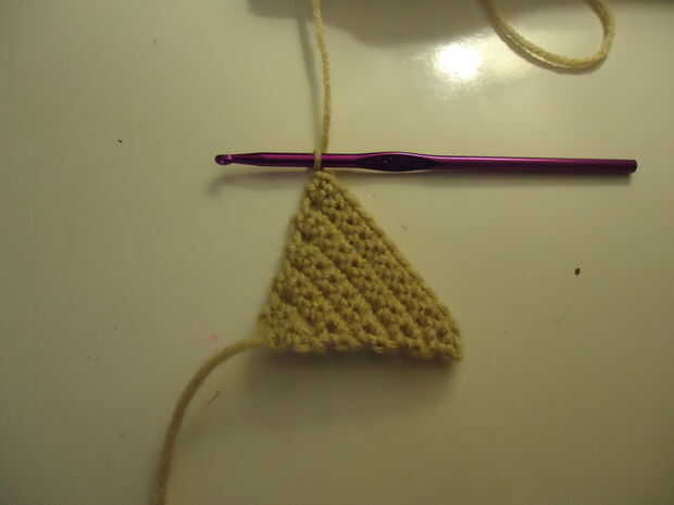 Seguir el patrón que se acaba de describir hasta que tenga 12 puntos de sutura a través de. Debe ser en forma de triángulo.