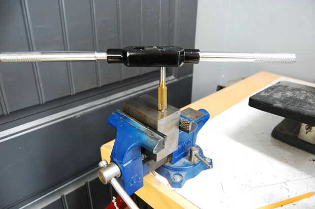 Un Consejo para golpear ligeramente: el orificio tiene que ser un poco más profundo que lo que realmente necesita hilo en. Tenga en cuenta que su llave es cónica; comienza no muy agresivamente hilos de corte en un agujero y poco a poco se va estrechando hasta el tamaño total de la rosca. Le dan una pequeña habitación en la parte inferior para tener en cuenta esto.