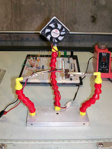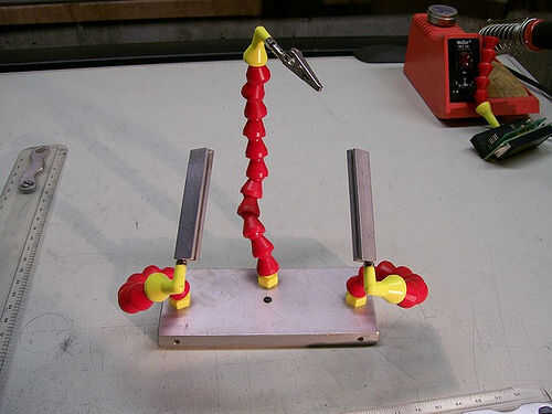 Otra característica interesante es que usted puede hacer todo tipo de accesorios para la celebración de lo que usted necesita trabajar en. Hasta ahora he hecho el titular de una tarjeta de circuitos, una abrazadera, un soporte para un LCD y un ventilador de extracción para mantener los gases fuera de su cara.