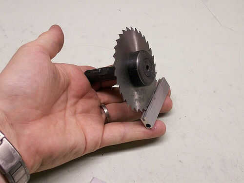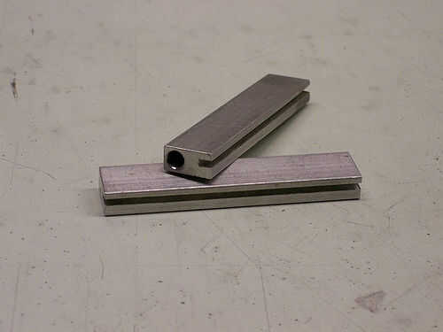 Para hacer la ranura utilicé una sierra de corte en mi molino. La ranura es un poco más 1/16" de ancho y 1/8" de profundidad corriendo toda la longitud del riel. Supongo que usted podría hacer esto con una sierra para metales o dremel, pero sería difícil y sospecho que los resultados serían bastante duro.