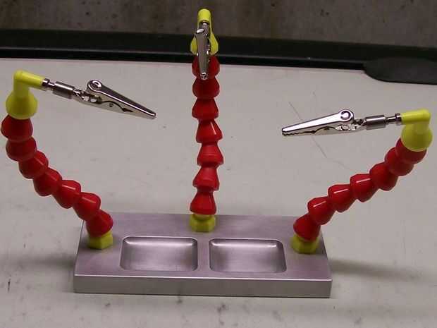 El lado negativo a las ideas anteriores es que el izquierdo y derecho están conectados a la base así que cambio de accesorios, que requiere un cambio de boquilla, significa que tienes que desconectar el cable. Sin embargo, la mayoría de los accesorios hacen que requieren un cambio de boquilla se utiliza sobre todo en el brazo de centro. El Cocodrilo clip manos y la placa de circuito titular sólo en los enchufes de plátano, así que ningún cambio de la boquilla se requiere.