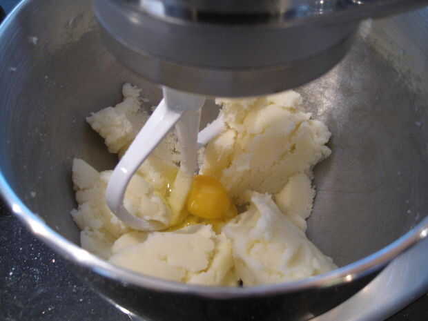 • Usando una batidora eléctrica, crema de la mantequilla y el azúcar a velocidad media hasta ligero y mullido - unos 5 minutos.