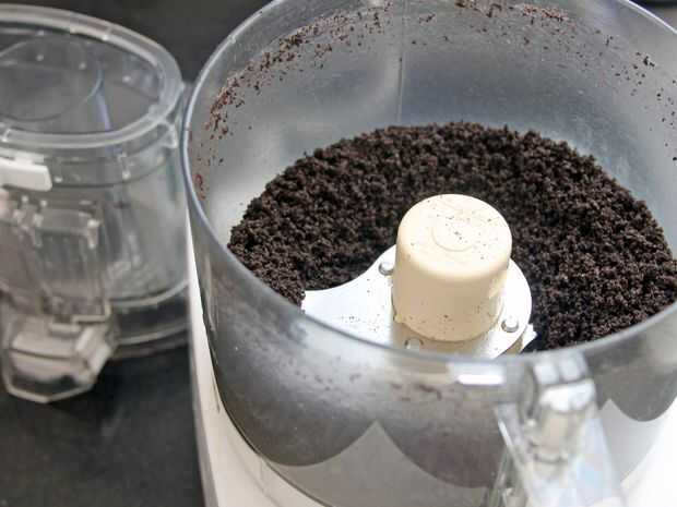 1. en un procesador de alimentos combinar galletas y mantequilla derretida y pulso hasta que forme una miga fina. Si persisten los pedazos grandes, sólo podría tener para los sacan y los comen. Horneado no es para los débiles de corazón.