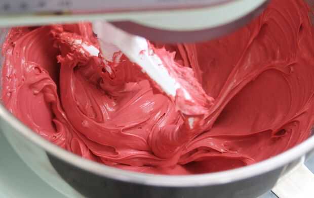 3. Agregue la vainilla y colorante rojo y mezcla hasta que quede bien mezclado.