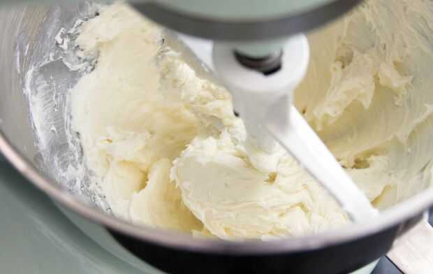 1. en un tazón grande o en el recipiente de una batidora, batir juntos queso crema, crema agria y azúcar hasta que quede suave.