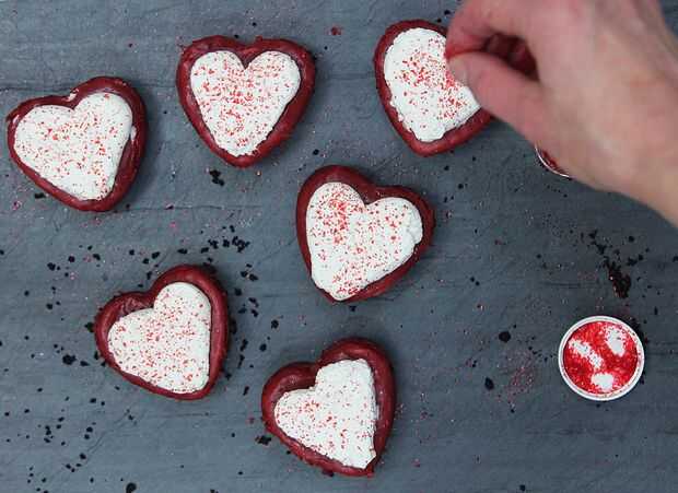 Si no usas moldes de corazón, puede corone a cuchara de la batida crema en las copas y lo llaman bueno.