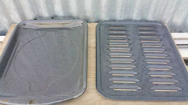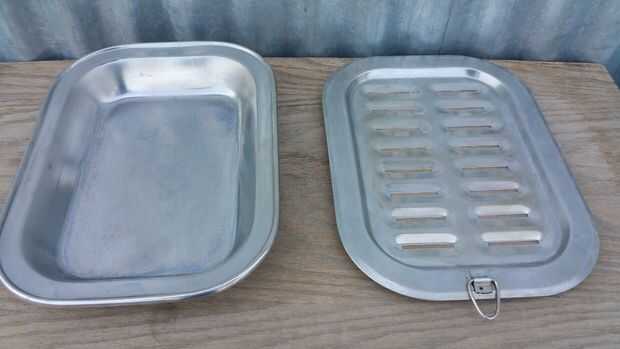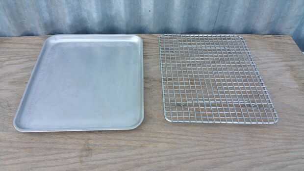Como se ve en las fotos, uso una combinación de cazuelas, bandejas y parrillas para hacer desigual en el horno. La idea es tener una bandeja plana ranurada o bastidor para colocar la carne molida en con una bandeja debajo para recoger jugos de las carnes como la cecina hornea. Yo uso una combinación de grandes y pequeñas ollas y bandejas para llenar mi horno porque quiero obtener la máxima cantidad de saltos con cada hornada.