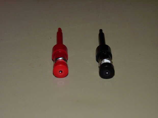 Encontré estos conectores 2mm la última vez que estuve en Skycraft (su sitio web no muestra 1/10 de lo que tienen en la tienda así que no dejes que su página web te engañe). Realmente estaba buscando de tomas de enchufe de plátano, pero pensé que podrían ser el tamaño ideal para conectarse a mi multímetro cables y efectivamente fueron. Desde entonces han intentado encontrar en Jameco y Sparkfun, pero no han tenido suerte. Por desgracia, sólo compré 2 rojos y 2 negros, por lo que son los adaptadores sólo que he hecho hasta ahora. Tenga en cuenta que hay una tuerca pequeña en estas que no aislar. No use en circuitos de alta tensión .