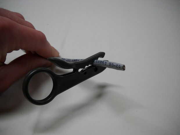 Asegúrese de que la hoja de los peladores perpendicular al alambre y pelacables alrededor del cable una vez, que marcará el revestimiento del cable.